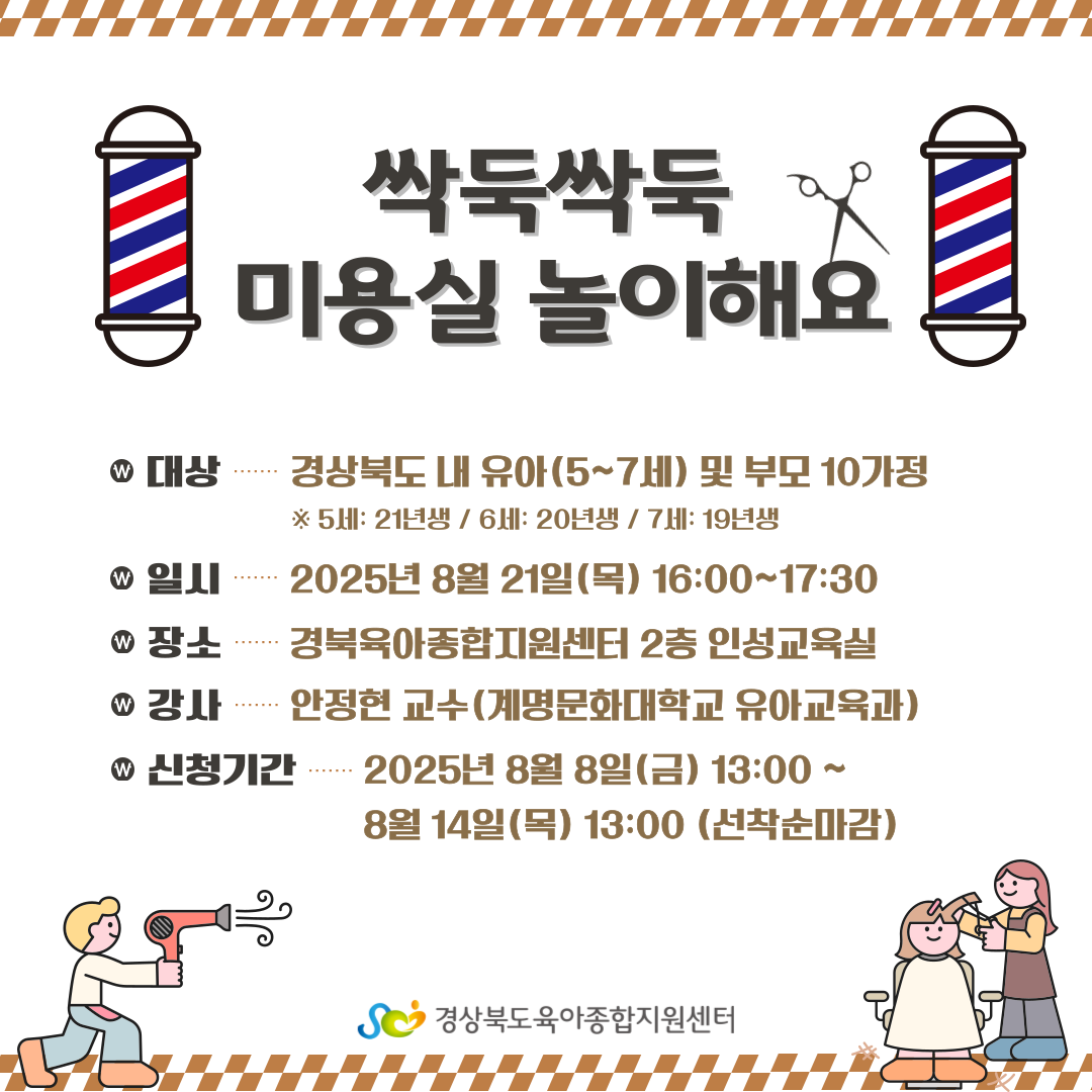 <2025년 공통부모교육(부모-자녀대상) 센터진행 2차 - ’싹둑싹둑 미용실 놀이해요‘ 안내>