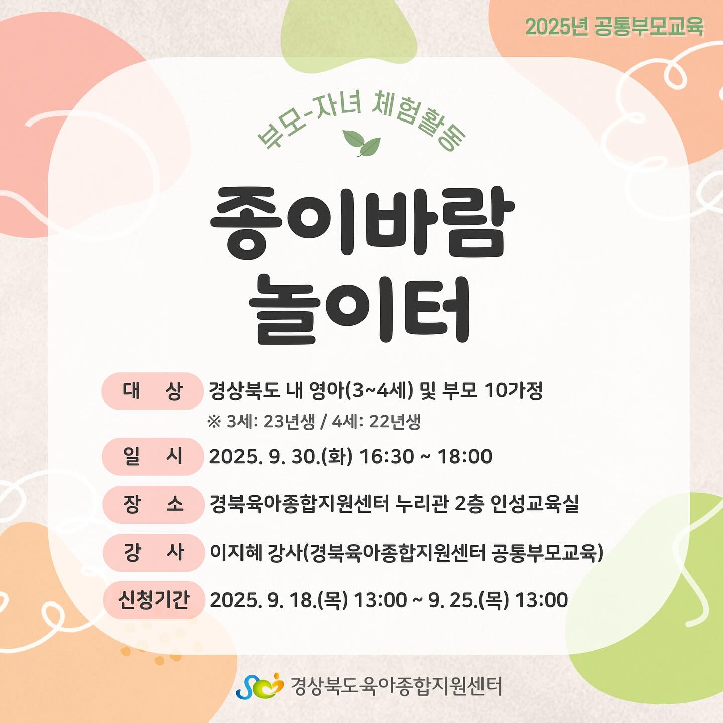 <2025년 공통부모교육(부모-자녀대상) 센터진행 3차 - ’습자지를 찢어 날려보아요‘ 안내>