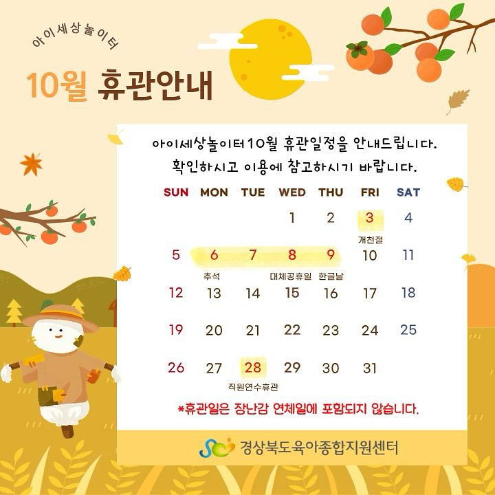 10월 휴관일정 확인하시고 이용에 참고바랍니다