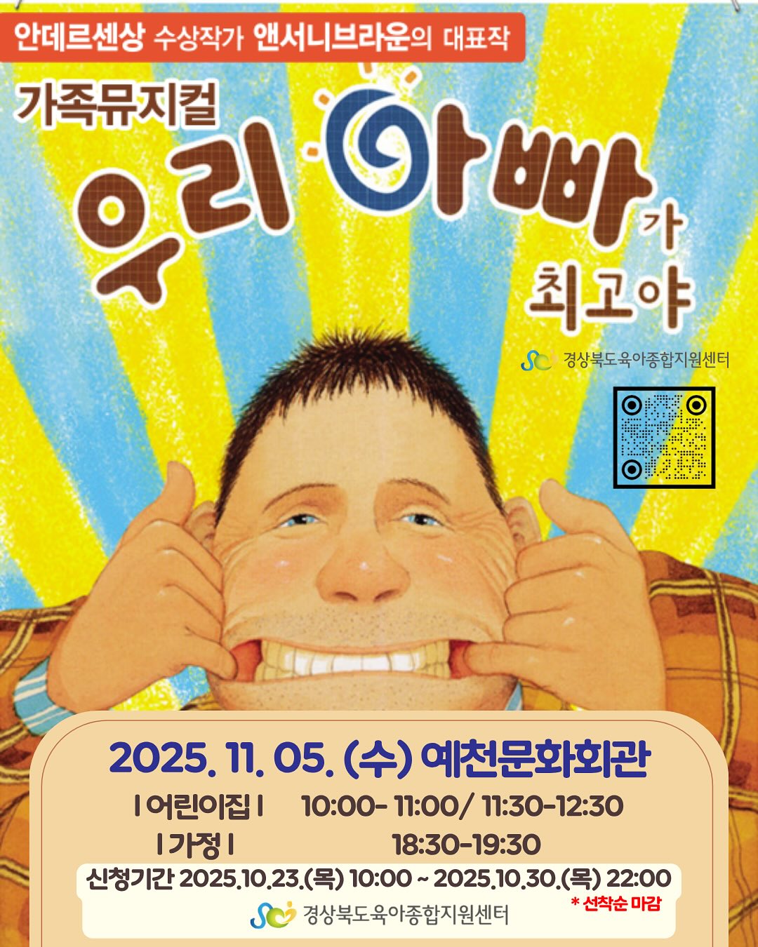 🩷경북육아종합지원센터에서 뮤지컬 ‘우리 아빠가 최고야’를 진행합니다🩷