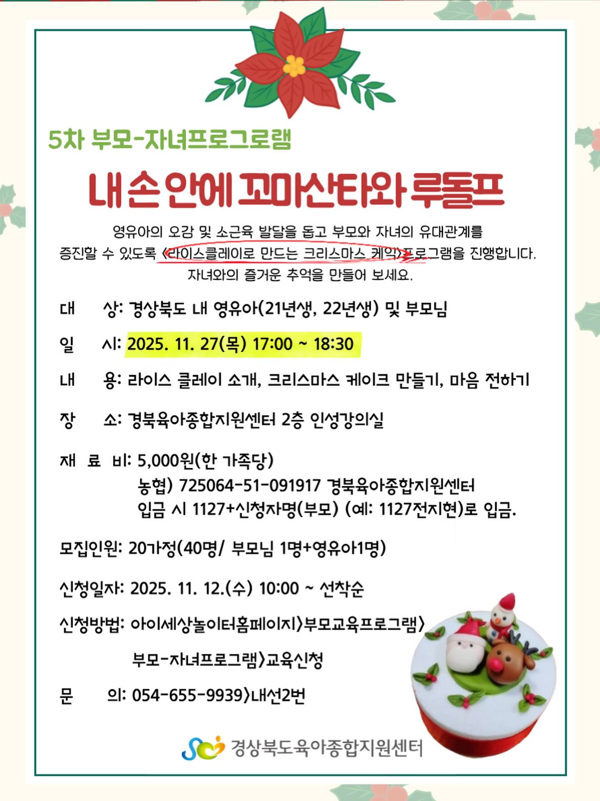 ⭐️라이스클레이로 만드는 크리스마스 케이크 프로그램을 진행합니다. 자녀와의 즐겨운 추억을 만들어보세요.