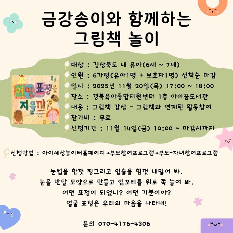 ☎️궁금하신 사항은 070-4176-4306, 아이꿈도서관으로 연락 바랍니다.