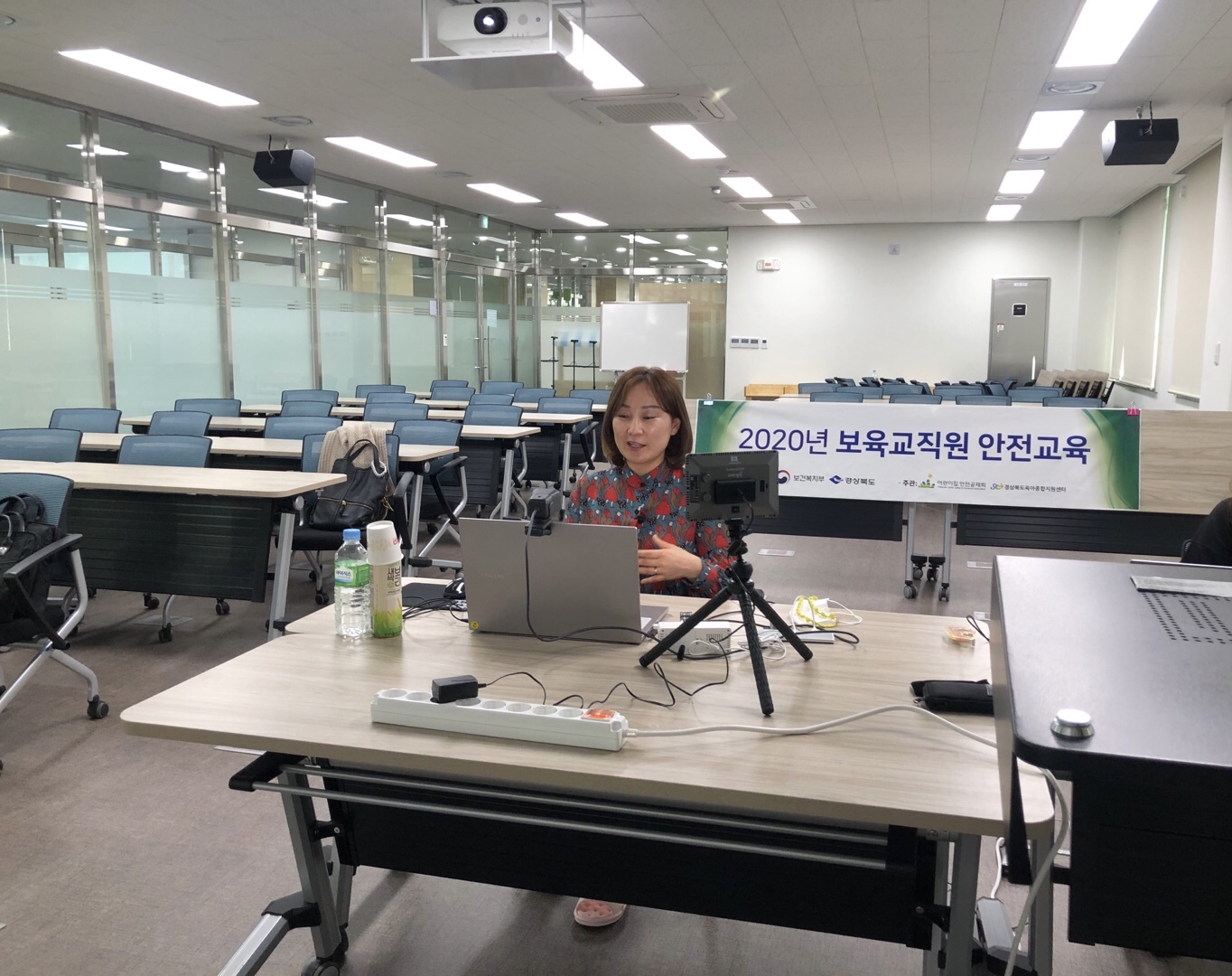 2020. 10. 22(목), 10. 26.(월) 15:00~18:00 경북도내 보육교직원 대상으로 온라인(ZOOM)으로 "보육교직원 안전교육"을 실시하였습니다.