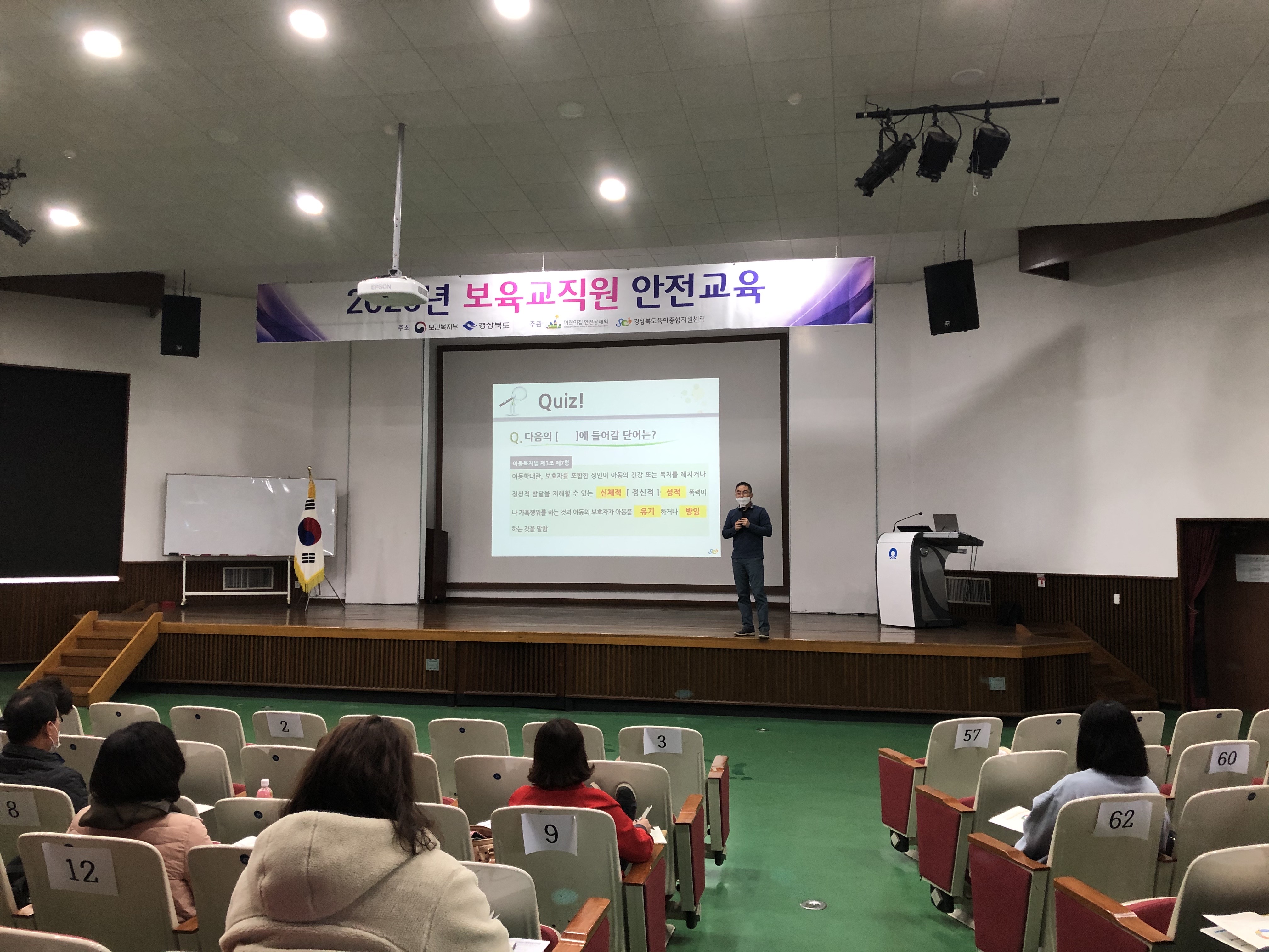 2020. 11. 7.(토) 9:30~16:30 경북교통문화연수원 대강당에서 경북도내 보육교직원 대상으로 "보육교직원 안전교육"을 실시하였습니다.