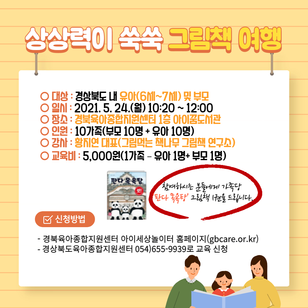 | 부모-자녀(2차)「상상력이 쑥쑥 그림책 여행」 (0) | 2021.07.02 |