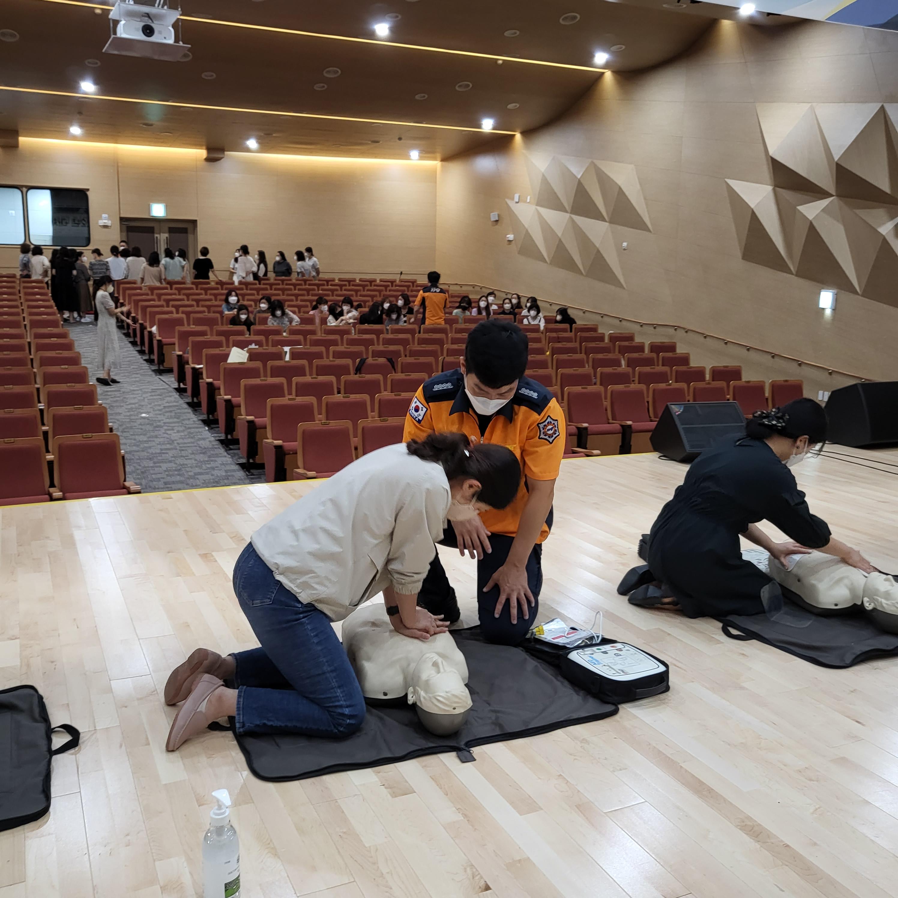 심폐소생술 및 응급처치교육(실습)도 진행하였습니다.