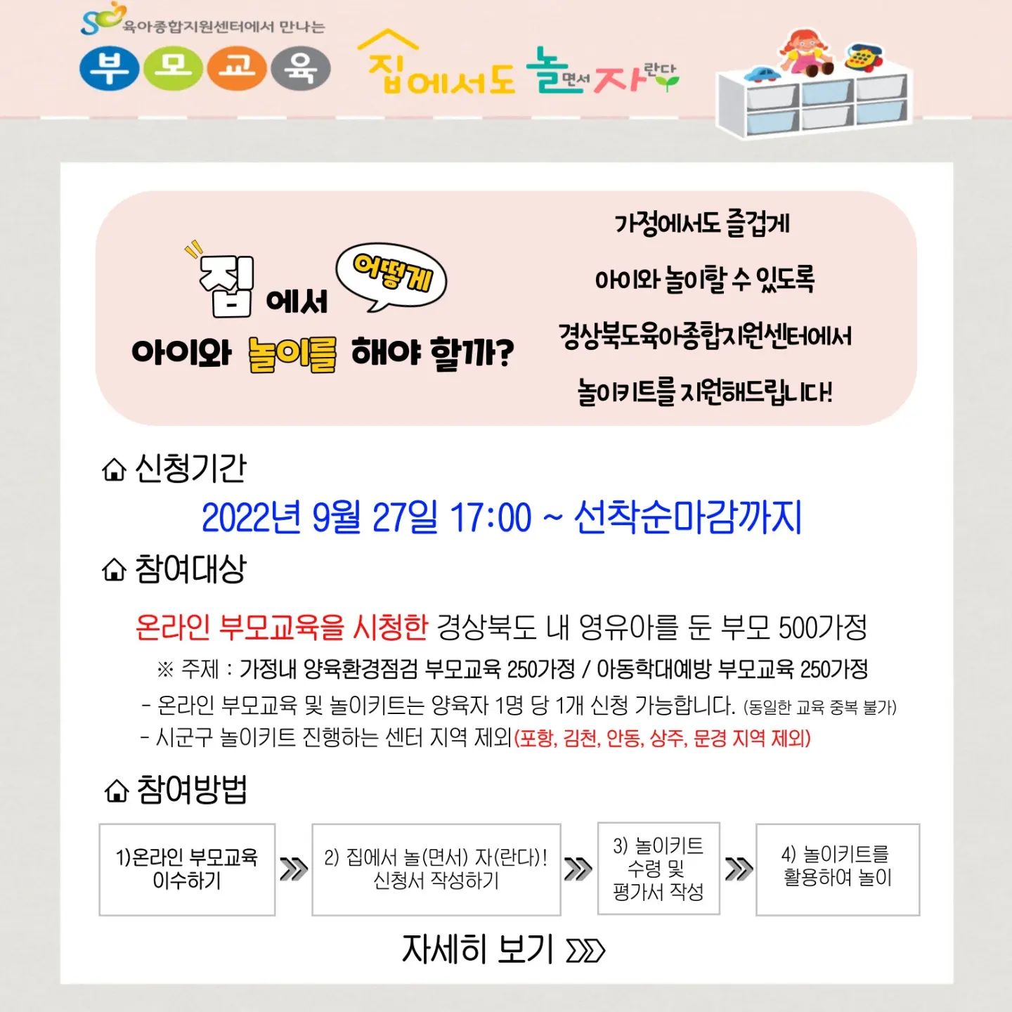 - 시군구 놀이키트 진행하는 센터 지역 제외(포항, 김천, 안동, 상주, 문경 지역 제외)