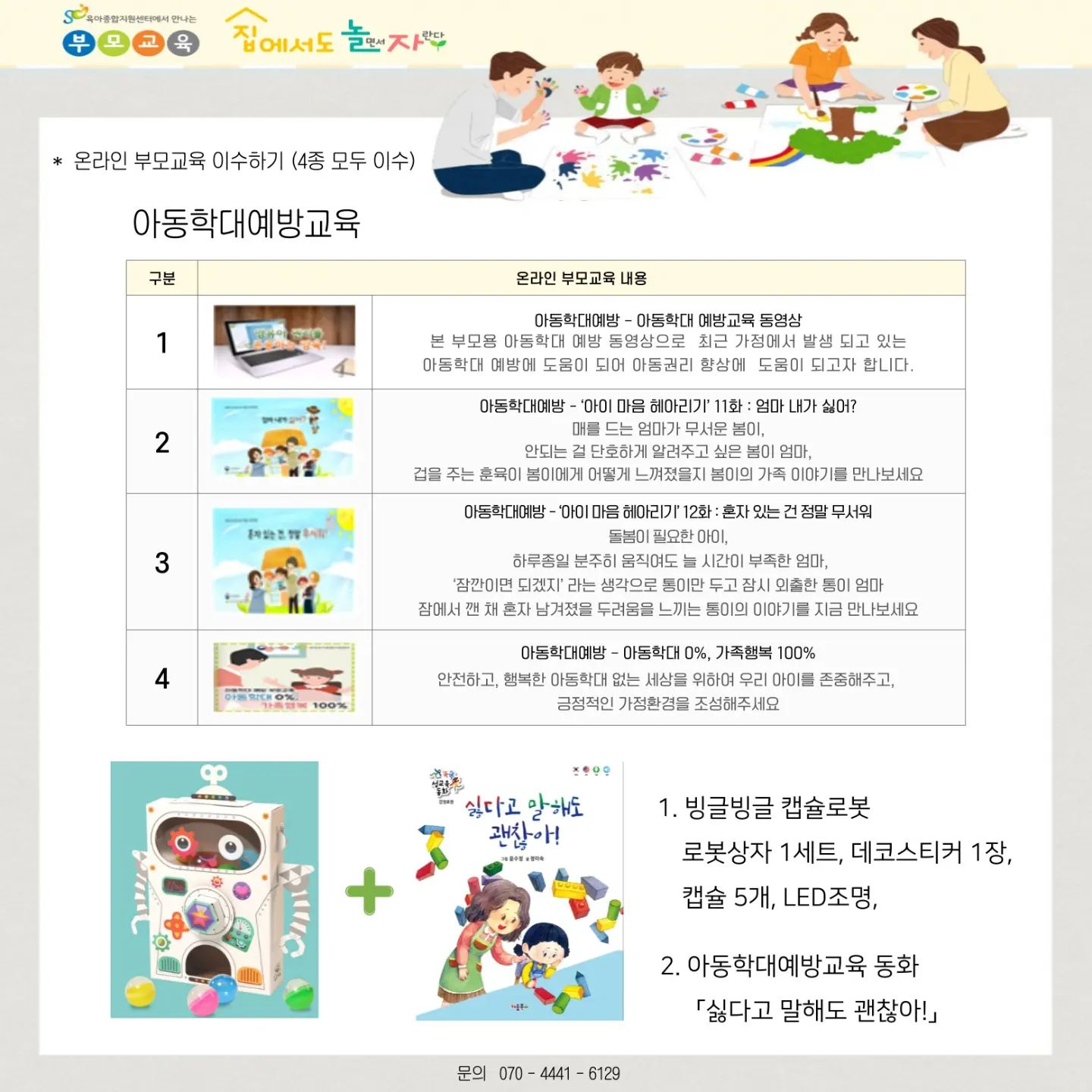 온라인 교육 수강 및 '집에서도 놀(면서)자(란다)' 신청 바로가기 : http://bz.gbcare.or.kr/plecture/