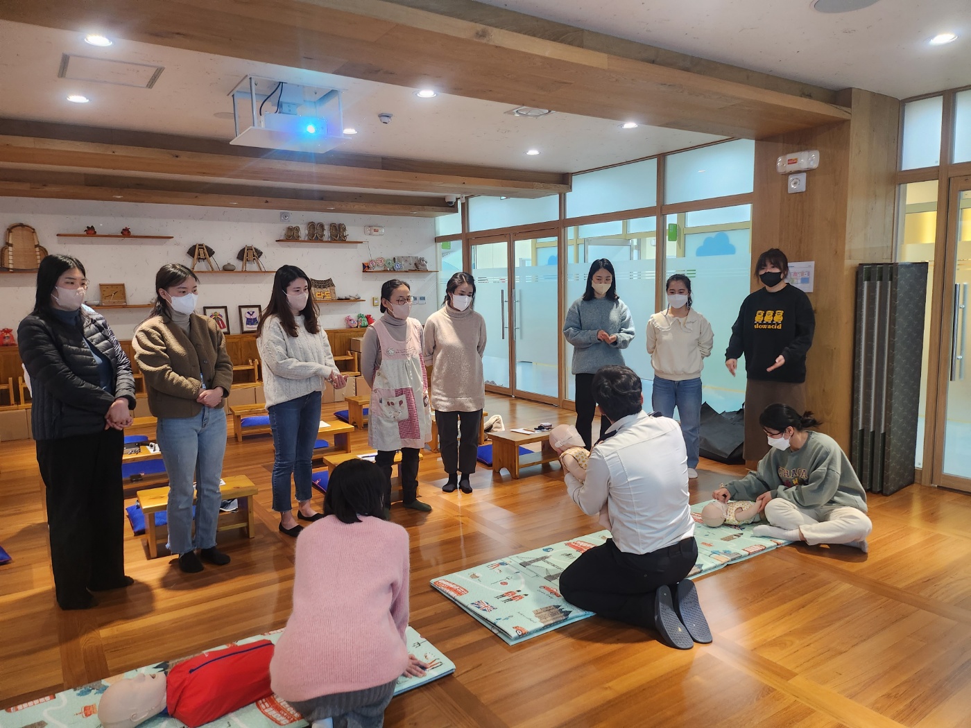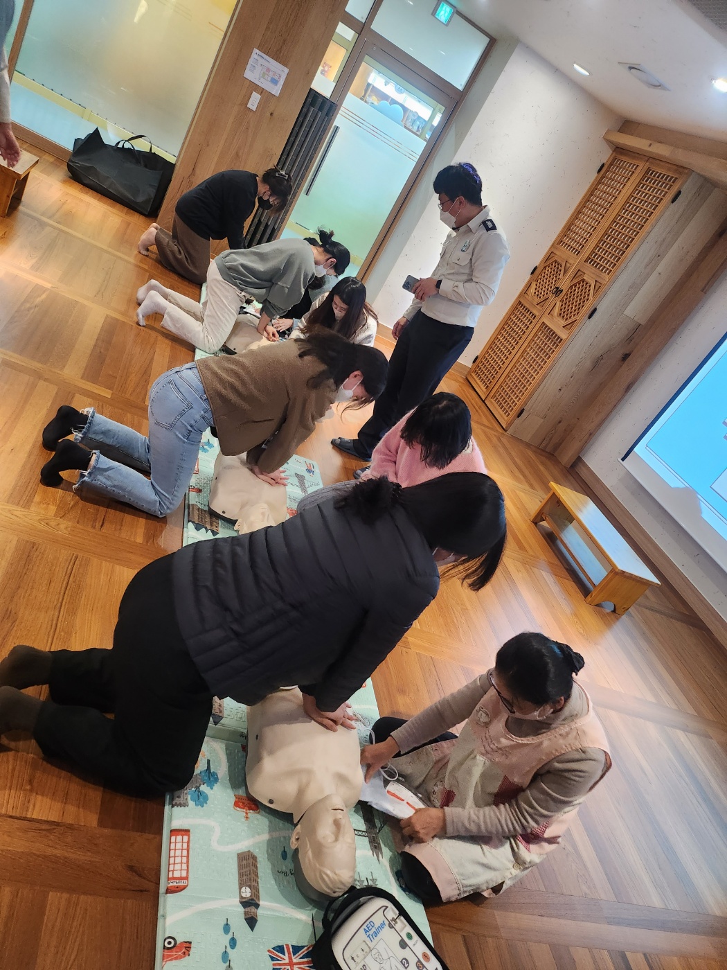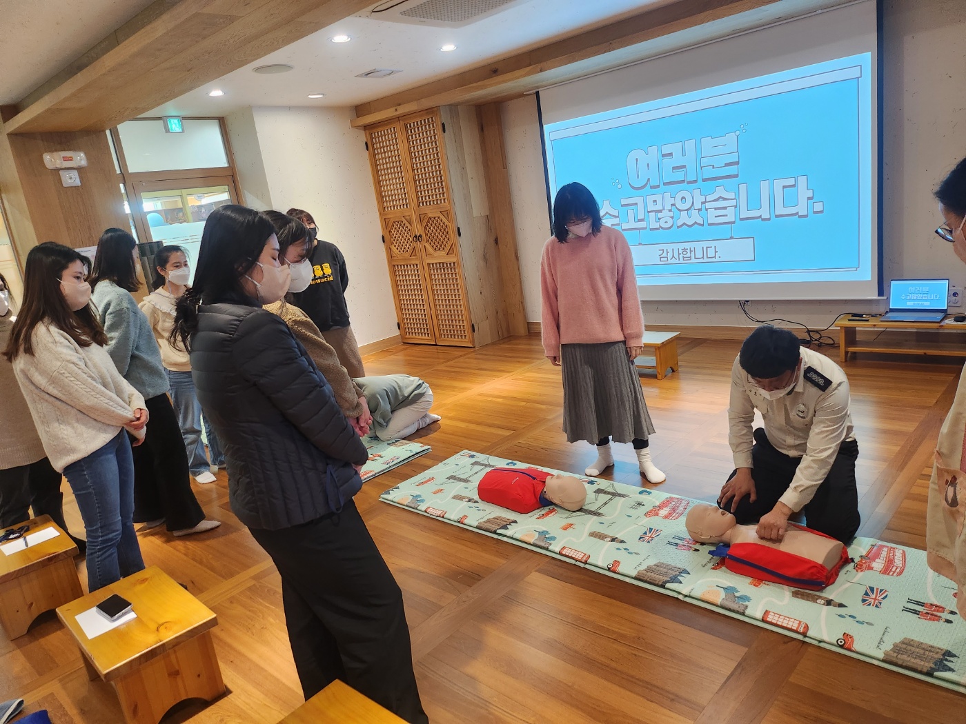 「어린이 안전교육-심폐소생술 및 응급처치 교육(실습)」을 주제로 이루어진 교육으로 현장에서 일어나는 응급상황 발생 시 대처능력을 기를 수 있도록 심폐소생술 및 응급처치 교육이 실습으로 이루어졌습니다.