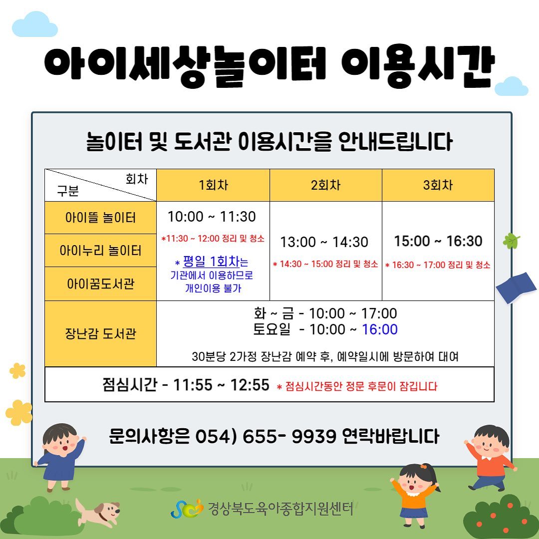 | 경북육아종합지원센터 아이세상놀이터설연휴 휴관안내합니다~♡ (0) | 2023.01.19 |