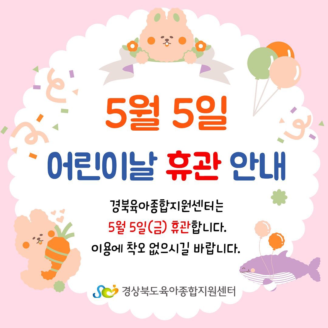 5월 3일(수)~4일(목) 어린이날 기념 이벤트를 진행하며, 5월 5일(금)은 휴관이므로 이용에 착오 없으시길 바랍니다