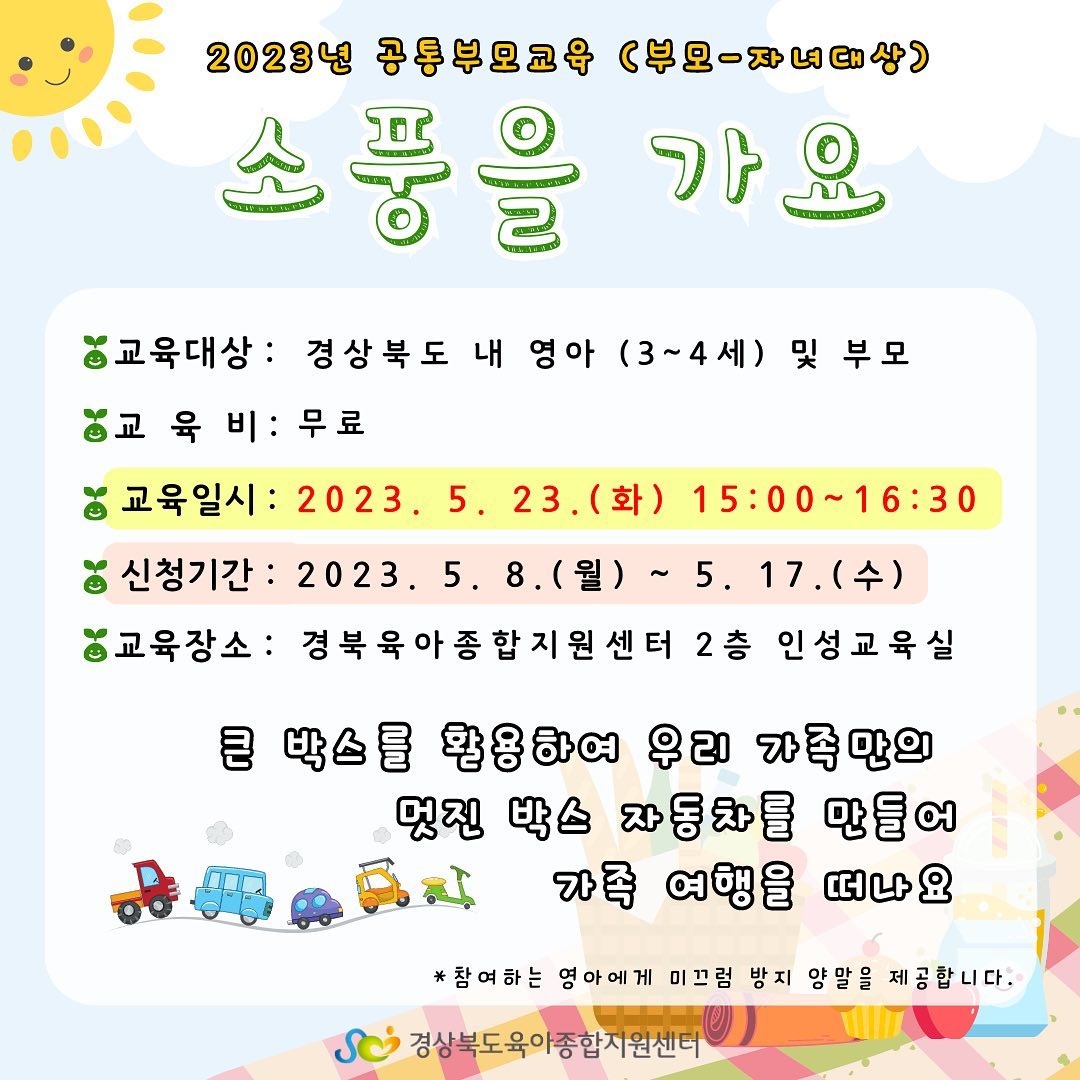 교육신청은 아이세상놀이터 홈페이지https://www.gbcare.or.kr/