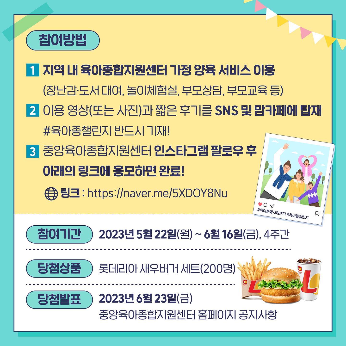 당첨발표: 2023년 6월 23일(금) 중앙육아종합지원센터 홈페이지 공지사항