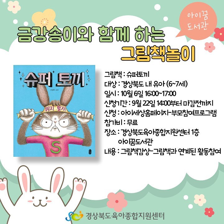 아이꿈도서관에서 금강송이와 함께하는 그림책 놀이를 진행합니다❤️