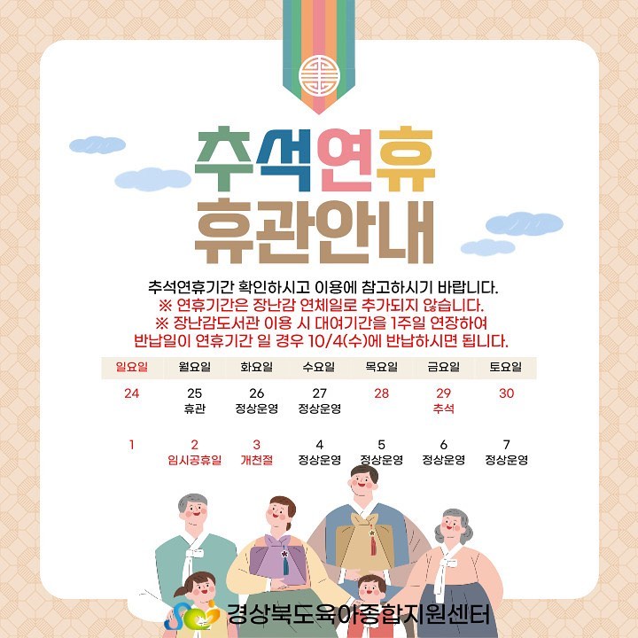 경북육아종합지원센터 아이세상놀이터 추석연휴 휴관안내합니다