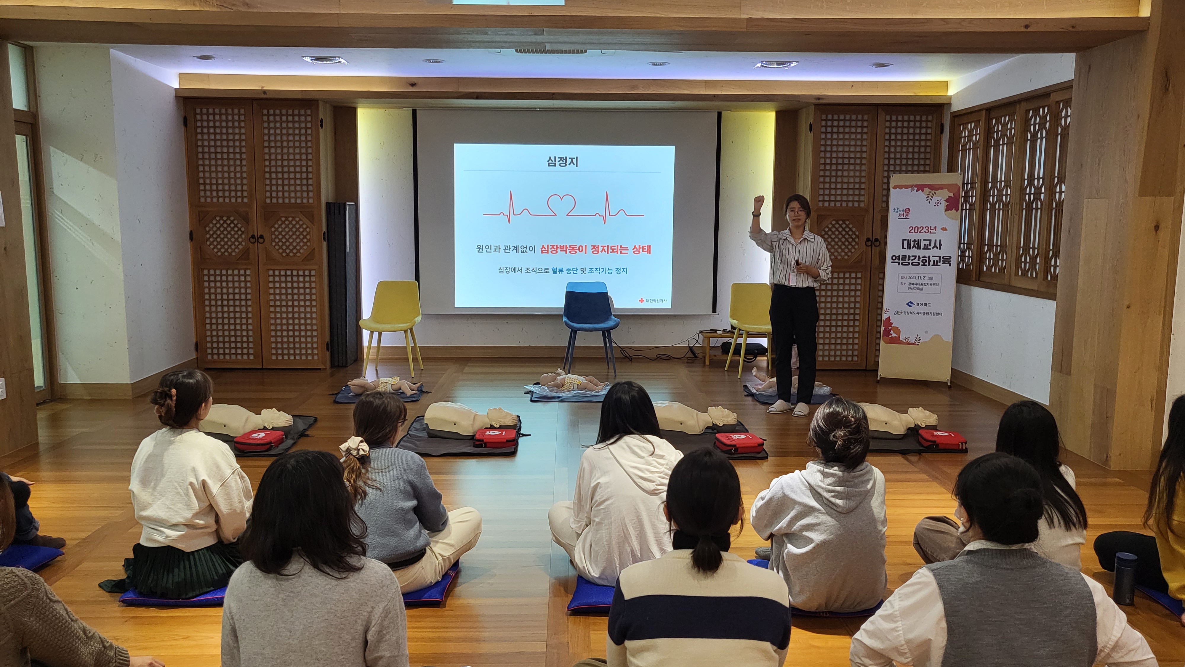 평가제 지표에 대한 내용을 숙지하여 보다 전문적인 역량을 갖출 수 있도록 지원하며, 대체 교사가 현장에서 발생할 수 있는 응급상황시 대처할 수 있는 행동요령 및 대처방법 등을 습득하기 위해 교육을 진행하였습니다.