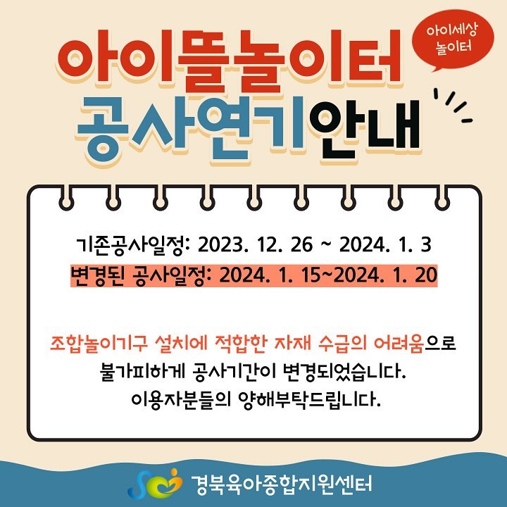 ⭐️아이뜰놀이터 공사연기 안내⭐️