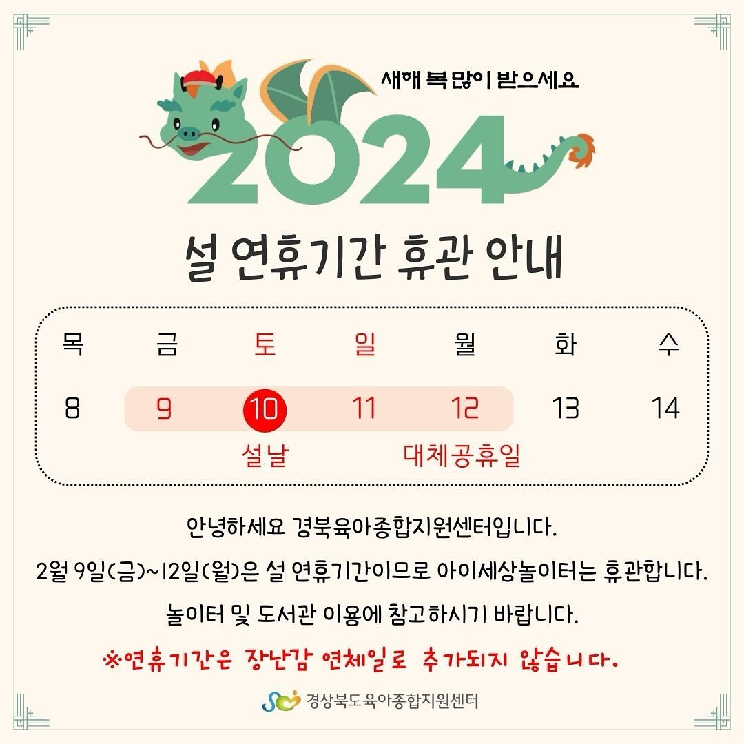 아이세상놀이터 설연휴 휴관 안내드립니다