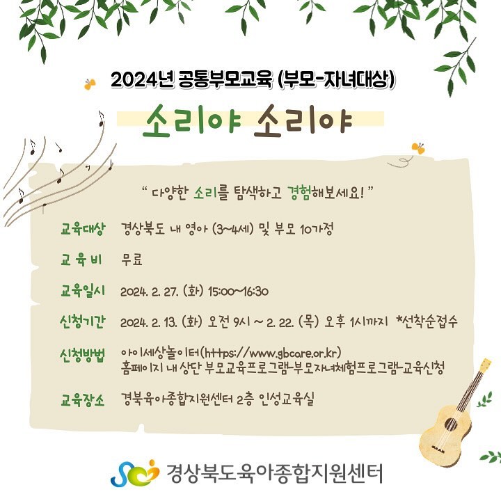 2024년 공통부모교육(부모-자녀대상) 소리야소리야 활동이 센터에서 진행됩니다^^