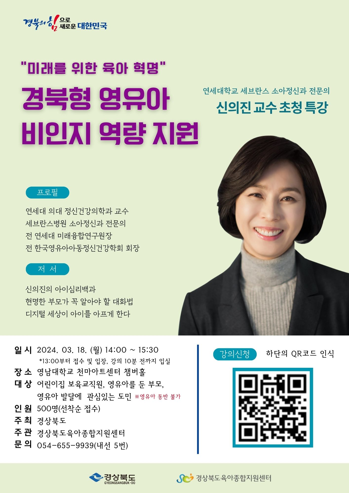 경상북도와 경상북도육아종합지원센터에서는 [경북형 영유아 비인지 역량 지원] 특강을 진행합니다.