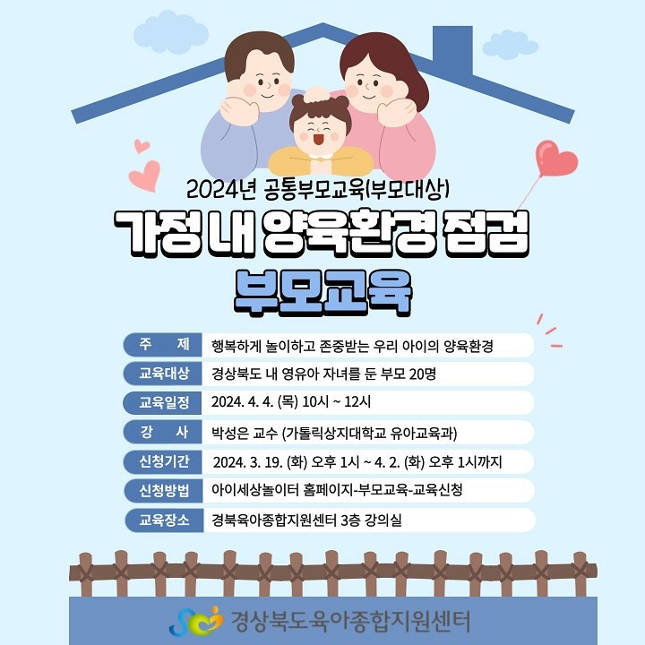 <2024년 공통부모교육(부모대상) 센터진행 1차 - 가정 내 양육환경 점검 부모교육 안내>