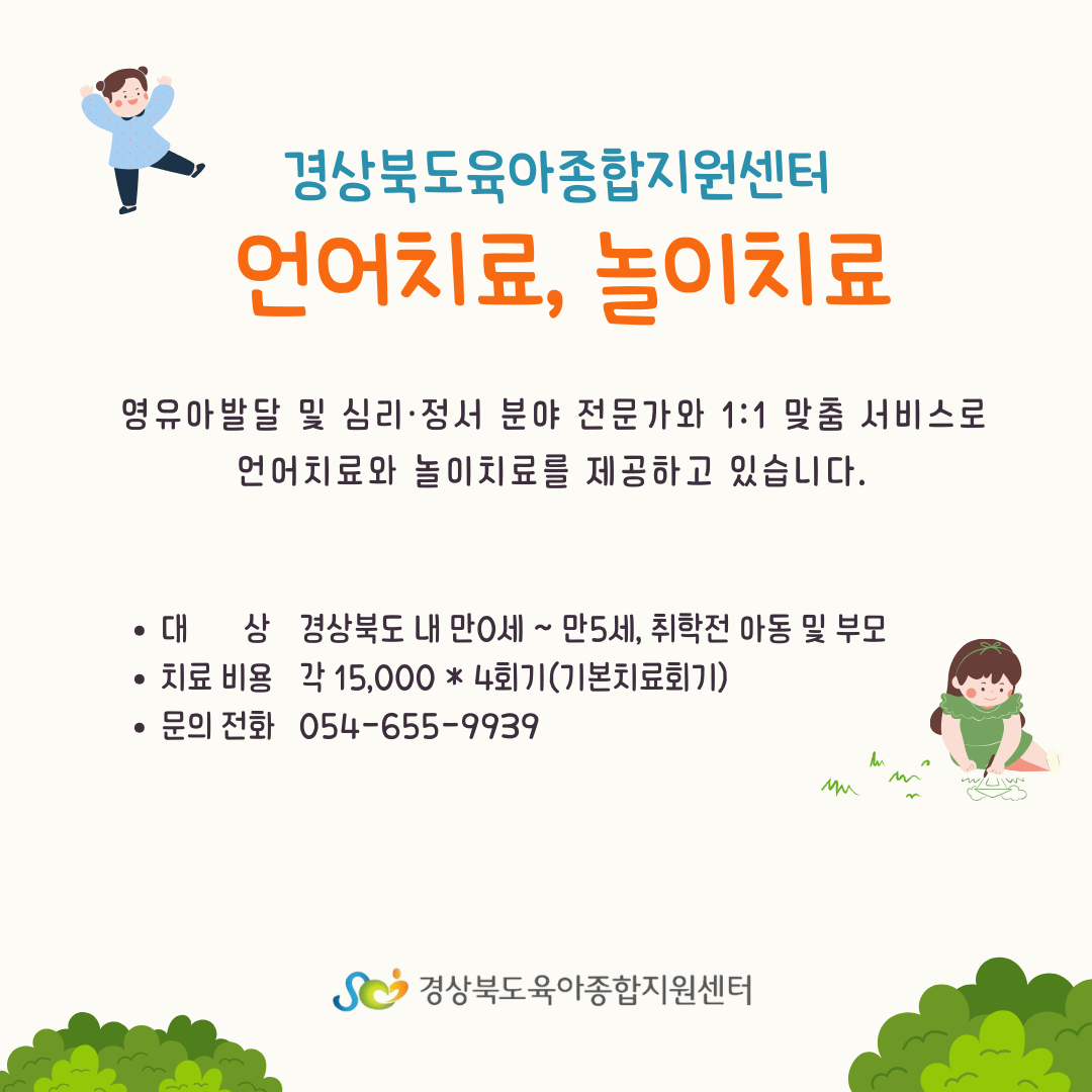 ✔대상 : 경상북도 내 만0세 ~ 5세, 취학전 아동 및 부모