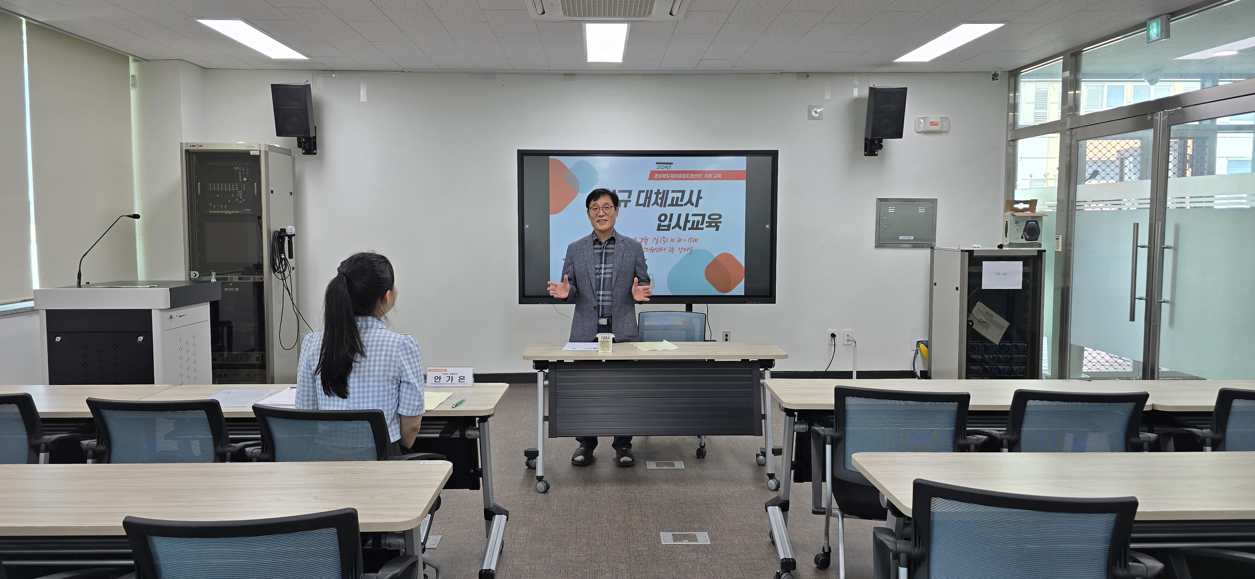 경북육아종합지원센터 3층 강의실에서 신규 대체교사 입사교육이 있었습니다.