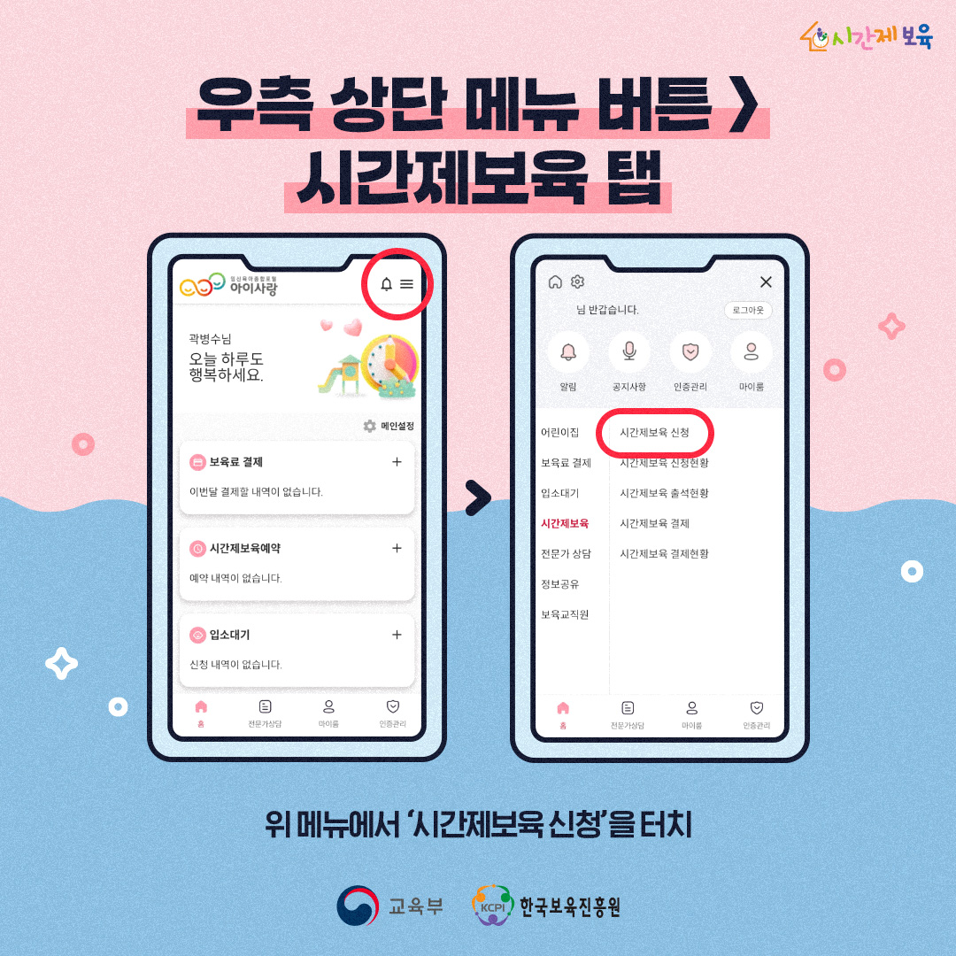 - 시간제보육 신청 바로가기: 임신육아종합포털 아이사랑(https://www.childcare.go.kr/)