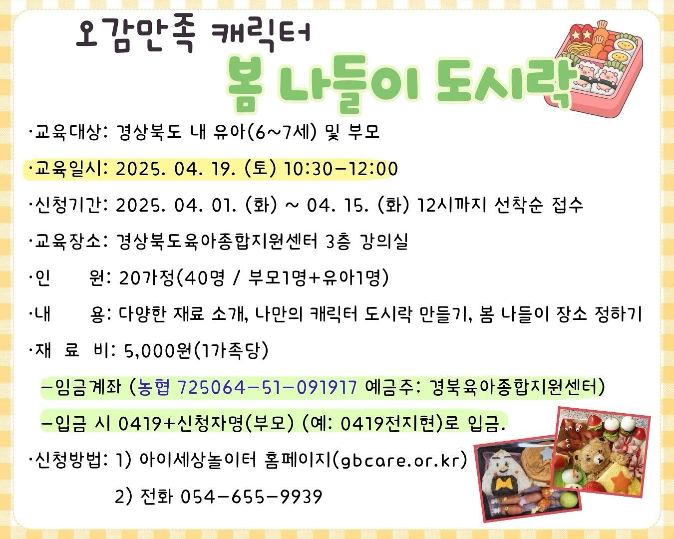1. 교육명 : 오감만족 캐릭터 봄 나들이 도시락