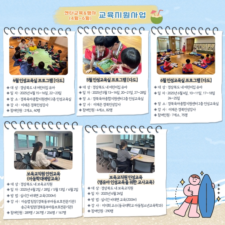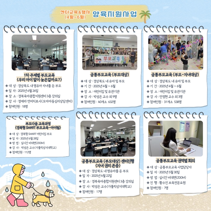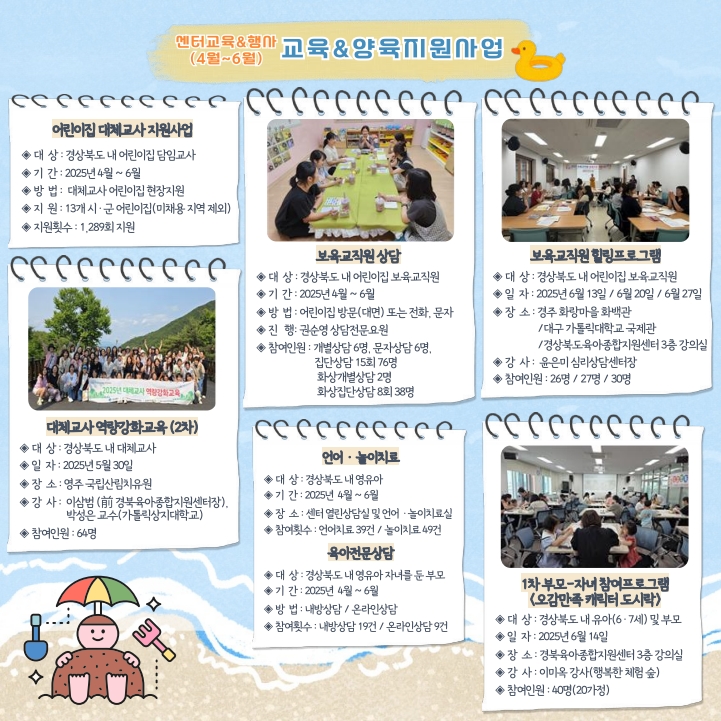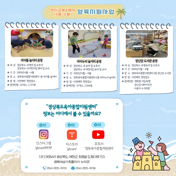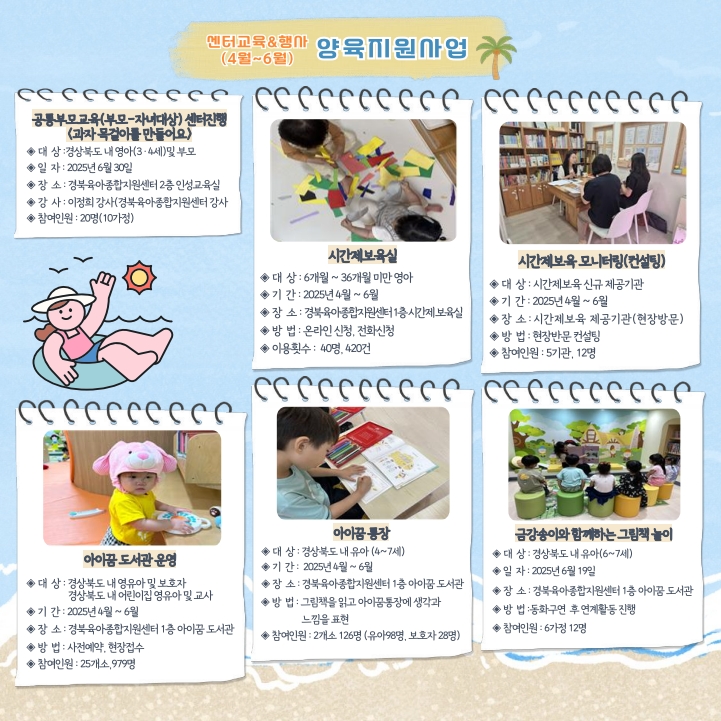 카테고리 없음 2025년 뉴스레터 2분기 by gbcare 2025. 6. 30. 2025년 2분기 뉴스레터(최종)-min.pdf 6.07MB 공유하기 게시글 관리 경상북도육아종합지원센터 공식 블로그 저작자표시 (새창열림) 댓글