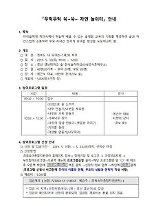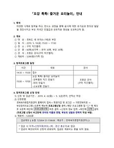 전체 글994 [무럭무럭 쑥~ 쑥~ 자연 놀이터] 부모-자녀 참여프로그램4 2019. 5. 8. 2019년 4월 공통부모교육(부모 자녀 대상) 일시 : 2019. 4. 1. ~ 4. 30. 대상 : 경상북도 내 영아 및 부모 장소 : 어린이집 외 2곳 2019. 5. 7. 2019년 4월 공통부모교육(부모대상) 일시 : 2019. 4. 1. ~ 4. 30. 대상 : 경상북도 내 영유아 자녀를 둔 부모 장소 : 칠곡 왜관 신협 외 5 곳 2019. 5. 7. 2019년 어린이집 표준보육과정교육(영아반-2차) <2019년 어린이집 표준보육과정교육(영아반-2차)> 4.27(토) 10:00~13:00, 경상북도교통문화연수원 대강당에서 경북도내 영아반담당 보육교사 대상으로 표준보육과정의 이해, 0~2세 보육프로그램 활용의 실제에 대한 교육이 진행되었습니다.^^ 2019. 5. 2. 룰루랄라 엄마와 함께하는 신체놀이-2회기 일시 : 2019. 4,25.(목) 장소 : 경주근로자종합복지관 에어로빅실 2019. 4. 26. 2019 보육교직원 안전교육(3차-안동) 2019. 4. 20.(토) 10:00~17:00 가톨릭상지대학교 소피아관에서 안동, 영주, 봉화, 예천, 청송, 영양 지역 보육교직원 대상으로 "보육교직원 안전교육"을 실시하였습니다. 2019. 4. 25. 큰꿈도서관견학(4월-또래어린이집) 2019. 4. 25. 2019년 경상북도 시간제보육사업 간담회 [2019년 경상북도 시간제보육사업 간담회]를 실시하였습니다. 시간제보육 간담회를 통해 2018년 시간제보육사업의 실적을 보고하고 발전 방안을 모색하여 시간제보육 서비스의 질을 높이고 내실 있는 운영을 도모하였습니다. ○ 일 시 : 2018. 4. 4.(목) 14:00 ~ 16:00 ○ 장 소 : 경상북도청 화랑.. 2019. 4. 25. 2019년 시간제보육교사 교육 「2019년 시간제보육교사 교육」을 실시하였습니다. * 대상 : 경상북도내 시간제보육 교사 18명 * 일시 : 2019. 4. 13(토) 10:00 ~ 16:00 * 장소 : 경북육아종합지원센터 3층 세미나실, 체험장 2019. 4. 25. SMART교사 2기 영아전문과정 기본교육 SMART교사 2기 영아전문과정 기본교육이 2019. 4. 20.(토) 10:00~17:00 대구가톨릭대학교 종합강의동 111호에서 실시하였습니다. 2019. 4. 25. 2019년 부모모니터링단 교육 2019년 경상북도 부모모니터링단 교육 2019. 4 18(목), 19(금), 23(화) 10:30 ~ 12:30 각 권역을 나누어 경상북도교통문화연수원 2층 회의실, 안동 도청 안민관 화랑실, 경북육아종합지원센터 3층 세미나실에서 부모모니터링단원 및 담당공무원 120명을 대상으로 “부모모니터링단 교육 ”을 실시하.. 2019. 4. 24. 2019년 부모모니터링 지표 원장 교육 경상북도 부모모니터링지표 원장교육 2019. 4 10(수) 10:30 ~ 12:30 경상북도교통문화연수원 대강당에서 부모모니터링을 준비하는 보육교직원 약 330명을 대상으로 “부모모니터링지표 원장교육 ”을 실시하였습니다. 2019. 4. 24. 2019년 어린이집 평가인증 통합지표교육(3차) 어린이집 평가인증 통합지표교육 2019. 4 13(토) 09:30 ~ 17:00 경주서라벌문화회관 대강당에서 평가인증을 준비하는 보육교직원 약 410명을 대상으로 “평가인증 통합지표교육”을 실시하였습니다. 2019. 4. 24. 오감 톡톡! 즐거운 요리놀이 2019. 4. 22. 룰루랄라 엄마와 함께하는 신체놀이-4.17(수) 1회기 일시: 2019. 4. 17.(수) 10:30~12:30 장소: 경주 근로자종합복지관 3층 에어로빅실 2019. 4. 19. 행복한 부모의 행복한 양육이야기 일시: 2019. 4. 15(월) 10:30~12:30 장소: 구미 비산동 주민센터 2019. 4. 16. 2019년 인성교육강사 워크숍 2019. 4. 2.(화) 경주시 The K Hotel 본관 1층 해금홀 2019. 4. 5.(금) 경상북도 시각장애인 복지관 3층 다목적실 2019. 4. 9.(화) 구미시 선산청소년수련관 1층 강당 2019. 4. 11.(목) 안동 청소년 문화센터 3층 행복한강의실 2019. 4. 16. 2019 보육교직원 안전교육(2차-구미) 2019. 4. 6.(토) 9:30~16:30 경북교통문화연수원 대강당에서 구미(국공립, 민간, 법인, 법인단체, 직장, 부모협동), 군위, 의성 지역 보육교직원 대상으로 "보육교직원 안전교육"을 실시하였습니다. 2019. 4. 15. 이전 1 ··· 41 42 43 44 45 46 47 ··· 56 다음