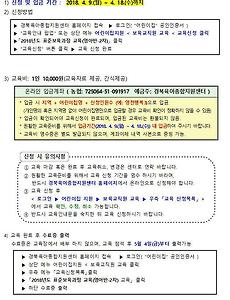 전체 글994 육아종합지원센터에서 만나는 공통부모교육 2018. 5. 15. 2018년 SMART교사 전문과정 모집합니다! 아래 모집 안내문을 클릭하면 경북육아종합지원센터 홈페에지 " SMART교사 전문과정(3기 영아전문과정)" 공지사항 화면으로 이동합니다. 2018. 5. 15. 2018년 SMART교사 전문과정(1기 영아전문과정) 기본교육 및 심화 워크숍 2018년 SMART교사 전문과정 (1기 영아전문과정) 모집이 완료되어 기본교육 및 심화 워크숍을 아래와 같이 실시하였습니다. ** 기본교육 * 대상 : 1기 영아전문과정 선정 어린이집 원장(또는 중간관리자) 및 영아반 담임교사 * 일시 : 2018. 4. 7(토) 10시~17시 * 장소 : 경상북도교통문화연수원 2층 .. 2018. 5. 15. 2018년 인성교육 강사 일반강의 모니터링(5월) 2018. 5. 14. 2018년 SMART 교사 전문과정 컨설턴트 세미나 및 위촉식 안녕하십니까? 2018. 4. 30.(월) 10:30~15:00 2018년도 SMART교사 전문과정 컨설턴트 세미나 및 위촉식이 영아전문 컨설턴트를 대상으로 진행되었습니다. 2018. 4. 30. 2018년 표준보육과정 교육(영아반-2차) 안녕하십니까? 2018. 4. 28.(토) 10:00~13:00 경산 대구가톨릭대학교 중강당에서 영아반 보육교사를 대상으로 [2018년도 표준보육과정 교육(영아반–2차)]가 진행되었습니다. 2018. 4. 30. 2018년 표준보육과정 교육(영아반-1차) 안녕하십니까? 2018. 4. 14.(토) 10:00~13:00 구미 선산문화회관 대강당에서 영아반 보육교사를 대상으로 [2018년도 표준보육과정 교육(영아반–1차)]가 진행되었습니다. 2018. 4. 30. 2018년 인성교육 강사 일반강의 모니터링(4월) 2018. 4. 30. 2018년 부모모니터링단 지표교육 2018년 4. 17(화), 19(목), 26(목) 23개 시군 부모모니터링 담당공무원, 부모모니터링 단원들 대상으로 3개(안동, 구미, 영천)권역으로 나누어 진행하였습니다. 2018. 4. 30. 2018년 부모모니터링 지표 원장 교육 지난 4. 12(목) 10:30~12:30 에 구미에 있는 교통문화연수원 대강당에서 2018년 부모모니터링 지표 원장교육을 실시하였습니다. 2018년 부모모니터링 운영안내와 세부지표에 대해 구체적으로 교육하였습니다. 2018. 4. 30. 2018년 평가인증 참여설명회 및 지표교육 지난 토요일 4. 28(토) 09:30~16:30까지 구미에 있는 경상북도교통문화연수원 대강당에서 평가인증 지표교육이 진행되었습니다. 평가인증 통합지표 체계 및 세부지표에 대해 구체적으로 교육하여 평가인증 및 확인점검을 준비하는 어린이집에 도움이 될 수 있도록 하였습니다. 2018. 4. 30. 2018년 평가인증 참여설명회 및 지표교육 안내 2018. 4. 12. 2018년 경상북도 시간제보육사업 간담회 4.10(토) 14:00~16:00까지 경북도청 안민관 사림실에서 경북도내 시간제보육 담당공무원, 관리기관, 제공기관 기관장님과 간담회가 실시되었습니다. 시간제보육 운영 및 홍보현황 보고, 이용실적 향상과 효과적인 홍보방안 모색, 제도개선사항 논의 등 시간제보육 사업의 발전방향에 대해 좋.. 2018. 4. 12. 2018년 3~5세 연령별 누리과정 담당교사 4월 집합연수 2018. 4. 9. 2018년 표준보육과정 교육(영아반-2차) 안내 2018. 4. 9. 2018년 표준보육과정 교육(영아반-1차) 안내 2018. 4. 9. 2018년 시간제보육 교사 교육 및 간담회 <2018년 시간제보육 교사 교육 및 간담회 > 1) 대상 : 시간제보육교사 2) 일시 : 2018. 3. 31(토) 10:30 ~ 15:00 3) 장소 : 경상북도 육아종합지원센터 3층 세미나실 4) 참여인원 : 시간제보육교사 14명 (센터장, 팀장, 관리자 1명, 강사 1명) 5) 내용 시 간 내 용 강 사 10:20~10:30 접수 및 인사말 이삼범 (.. 2018. 4. 3. 경상북도육아종합지원센터 2018년 뉴스레터 3월호 2018. 3. 30. 이전 1 ··· 49 50 51 52 53 54 55 56 다음