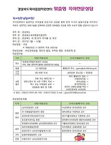 전체 글993 2018년 평가인증 참여설명회 및 통합지표교육(1차시) 2018년도 어린이집 평가인증 참여설명회 및 통합지표교육 안내(1차시) (2018. 2. 7. 담당자 이재경 054-337-9939~40) 1. 목적 어린이집 평가인증 참여설명회 및 지표교육을 통해 평가인증 운영체계 및 과정 관리, 개선계획 수립과 평가인증 영역 및 지표에 대한 이해를 도와 체계적이고 효율적인 평.. 2018. 2. 7. 2018년 1월 8일 오후 05:33 2018. 1. 8. 2018년 3~5세 연령별 누리과정 담당교사 1월(63차) 집합연수 안내 2018. 1. 8. 큰꿈도서관 견학(가와인어린이집) 가와인 친구들이 큰꿈도서관에 견학왔어요^^ 친구들과 재미있는 책도 보고~ 뽀로로 친구도 만나고 즐거운 하루를 보냈답니다 2017. 12. 27. 큰꿈도서관 견학(별어린이집) 2017. 12. 27. 큰꿈도서관 견학(영천 베이비하우스) 2017. 12. 27. 뉴스레터 4분기 2017. 12. 27. 2017년 평가인증 참여설명회 및 통합지표교육 2017. 12. 18. 클로버 부모교육(존중파티) 2017. 12. 5. 아빠육아참여 우수사례 공모전 심사 결과 발표 2017. 11. 10. 어린이집 평가인증 통합지표교육 2017. 11. 8. 자녀권리존중 부모교육 2017. 11. 6. 클로버 부모교육(이웃사랑등대) 2017. 11. 6. 보육교직원심리상담안내 2017. 10. 31. 행복씨앗 인성교육 2017. 10. 30. 부모-자녀 참여 프로그램- 부모와 함께하는 민속문화 체험 안내 2017. 10. 30. 새롭게 단장한 경상북도육아종합지원센터 시간제보육실!! 시간제보육실 안내데스크 시간제보육 정보뿐만 아니라 다양한 양육 관련 정보를 얻을 수 있어요~~ 시간제보육실 부모대기실 시간제보육을 이용하는 부모님을 위해 부모대기실도 마련했어요~~ 시간제보육실(키움뜰반) 내부 다양한 놀잇감과 교재교구가 시간제보육을 이용할 친구들을 기.. 2017. 10. 30. 맞춤형 육아전문상담 안내 2017. 10. 30. 이전 1 ··· 51 52 53 54 55 56 다음