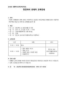 분류 전체보기994 주제별 부모교육 1차 「행복한 조부모 되기」 5월 24일(목) 경산시립농촌보육정보센터에서 10시부터 12시까지 주제별 부모교육 1차 「행복한 조부모 되기」교육을 실시하였습니다. 2018. 5. 30. 2018년 표준보육과정 교육(영아반-3차) 안녕하십니까? 2018. 5. 19.(토) 10:00~13:00 안동 가톨릭상지대학교 소피아관 대강당에서 영아반 보육교사를 대상으로 [2018년도 표준보육과정 교육(영아반–3차)]가 진행되었습니다. 2018. 5. 28. 2018년 3~5세 연령별 누리과정 담당교사 5월 집합연수 안녕하십니까? 2018. 5. 12.(토) 09:00~18:00 대구가톨릭대학교 중앙도서관 지하영상세미나실에서 3~5세 연령별 누리과정 담당교사 대상으로 [2018년 3~5세 연령별 누리과정 담당교사 집합연수]가 진행되었습니다. 총론 및 5개영역과 누리과정에 기초한 어린이집 프로그램 및 혼합반 프로그램에 대.. 2018. 5. 28. 2018년 SMART교사 전문과정(2기 유아전문과정) 기본교육 5월 19일(토) 경상북도교통문화연수원에서 10시부터 5시까지 "2018년 SMART교사 전문과정 (2기 유아전문과정)" 기본교육을 실시하였습니다. 2018. 5. 25. 2018년 5월 대체교사 신규입사교육 안녕하십니까? 2018년 5월 2일(수) 09:00~18:00 경북육아종합지원센터 3층 세미나실에서 5월 대체교사 신규입사자를 대상으로 2018년 5월 대체교사 신규입사자교육이 진행되었습니다. 2018. 5. 18. 4월 공통부모교육(부모대상) 교육안내 2018. 5. 15. 육아종합지원센터에서 만나는 공통부모교육 2018. 5. 15. 2018년 SMART교사 전문과정 모집합니다! 아래 모집 안내문을 클릭하면 경북육아종합지원센터 홈페에지 " SMART교사 전문과정(3기 영아전문과정)" 공지사항 화면으로 이동합니다. 2018. 5. 15. 2018년 SMART교사 전문과정(1기 영아전문과정) 기본교육 및 심화 워크숍 2018년 SMART교사 전문과정 (1기 영아전문과정) 모집이 완료되어 기본교육 및 심화 워크숍을 아래와 같이 실시하였습니다. ** 기본교육 * 대상 : 1기 영아전문과정 선정 어린이집 원장(또는 중간관리자) 및 영아반 담임교사 * 일시 : 2018. 4. 7(토) 10시~17시 * 장소 : 경상북도교통문화연수원 2층 .. 2018. 5. 15. 2018년 인성교육 강사 일반강의 모니터링(5월) 2018. 5. 14. 2018년 SMART 교사 전문과정 컨설턴트 세미나 및 위촉식 안녕하십니까? 2018. 4. 30.(월) 10:30~15:00 2018년도 SMART교사 전문과정 컨설턴트 세미나 및 위촉식이 영아전문 컨설턴트를 대상으로 진행되었습니다. 2018. 4. 30. 2018년 표준보육과정 교육(영아반-2차) 안녕하십니까? 2018. 4. 28.(토) 10:00~13:00 경산 대구가톨릭대학교 중강당에서 영아반 보육교사를 대상으로 [2018년도 표준보육과정 교육(영아반–2차)]가 진행되었습니다. 2018. 4. 30. 이전 1 ··· 74 75 76 77 78 79 80 ··· 83 다음