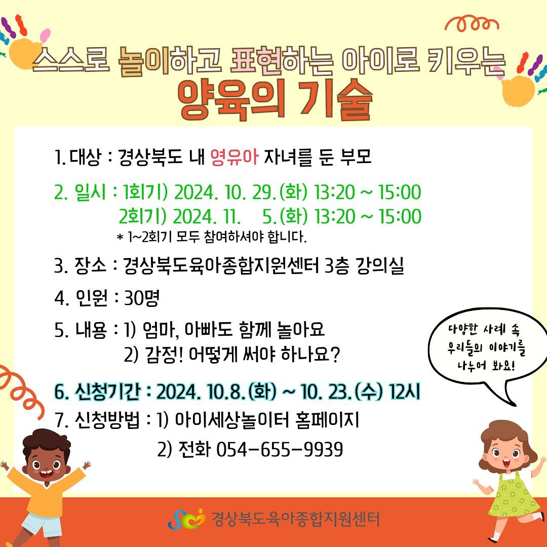 1. 교육명 : 스스로 놀이하고 표현하는 아이로 키우는 양육의 기술